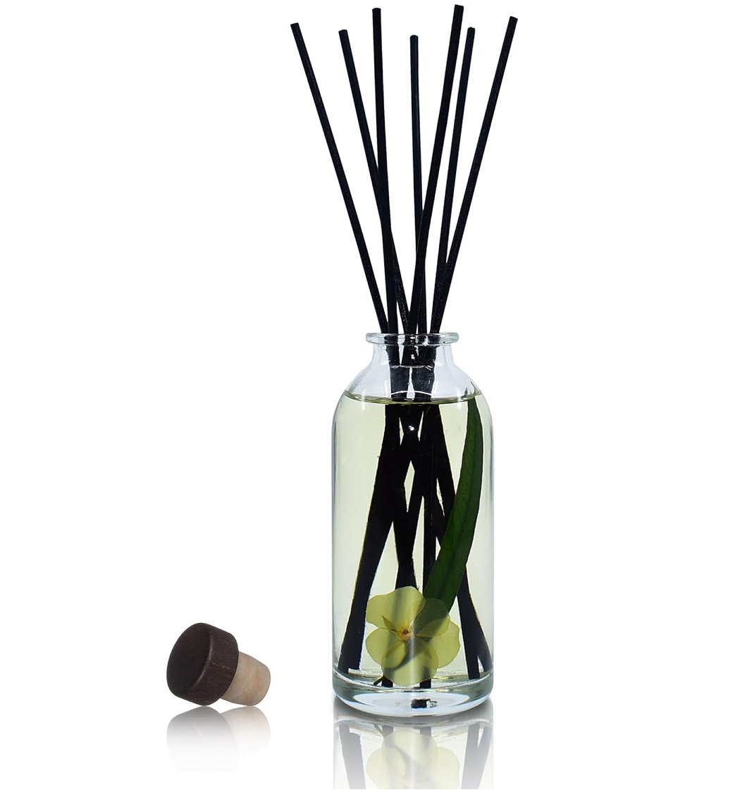 Acest difuzor de uleiuri este prezentat într-o sticlă elegantă, cu bețișoare negre care eliberează treptat parfumul natural. Conține uleiuri parfumate cu note florale delicate, ce aduc prospețime și echilibru în încăpere. Elementele decorative din interiorul sticlei îi oferă un aspect sofisticat. Este ideal pentru sufragerie, dormitor sau spații de relaxare. Oferă o aromă constantă pentru mai multe săptămâni.