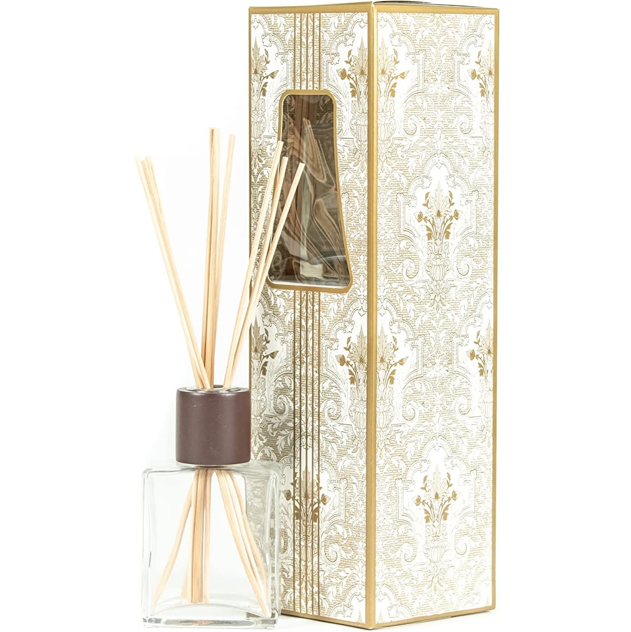 Acest difuzor elegant conține o sticlă cu ulei parfumat și bețișoare din lemn care eliberează treptat aroma. Cutia decorativă adaugă un plus de rafinament, fiind potrivită și pentru cadouri. Este ideal pentru sufragerie, dormitor sau birou. Asigură o parfumare constantă timp de câteva săptămâni. Este alegerea perfectă pentru cei care iubesc eleganța și aromele discrete.